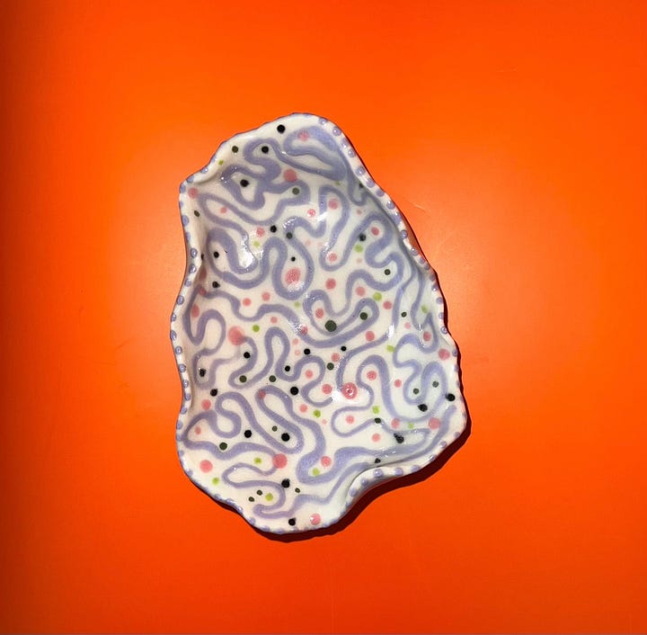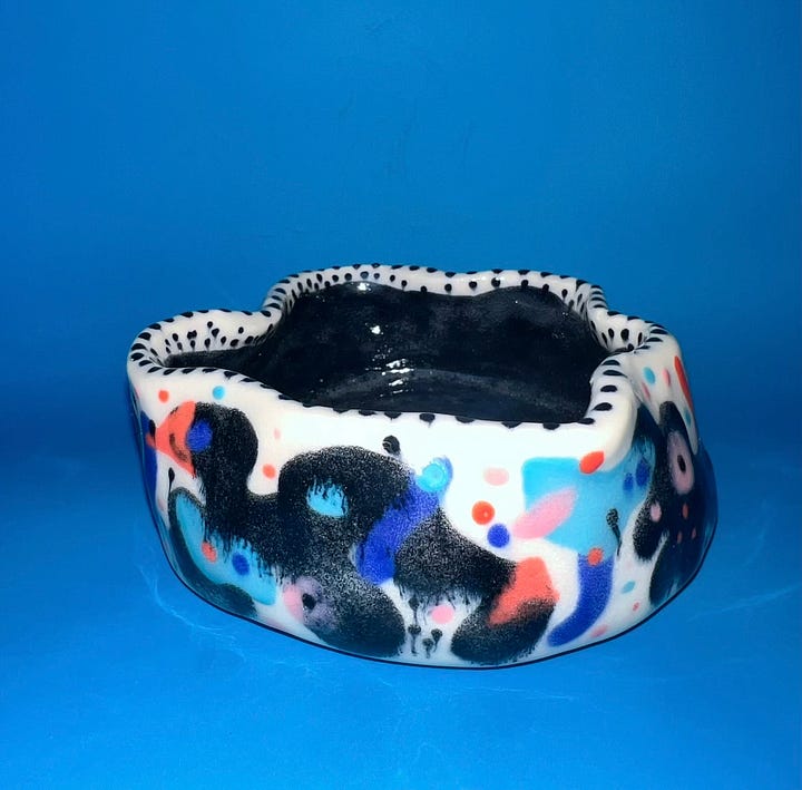 I joined a pottery studio this past year and have been loving the process of handbuilding abstract pieces. I've created abstract visual art in the past, so it's been inspiring being able to merge different mediums and incorporate something new with something familiar.